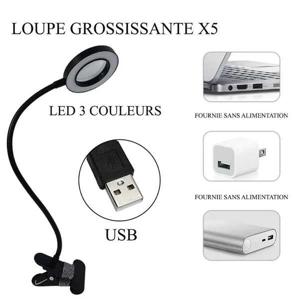 Lampe loupe de bureau loupe 5X avec éclairage LED 3 couleurs